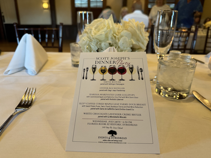 Supper Club, more recently known as Dinner Party, was our occasional wine dinner event that started in 2011 with a gathering at the Citrus Club in Downtown Orlando and ended Wednesday evening in the Florida Room at Dubsdread, next door to the Tap Room at Dubsdread.