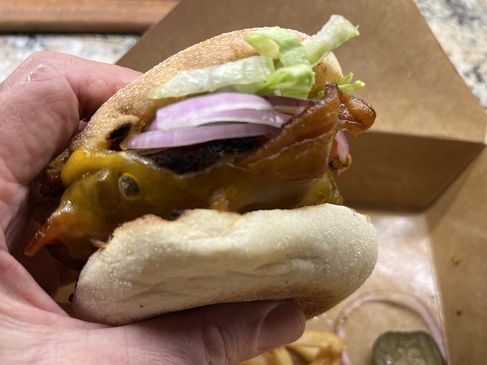 If you didn’t already know that Tesar, whose knife & Spoon restaurant at the Ritz-Carlton next door was recently awarded a Michelin star, was attached to the burger joint, you probably wouldn’t figure it out if you just hopped out of the pool with a craving for a bite to eat.